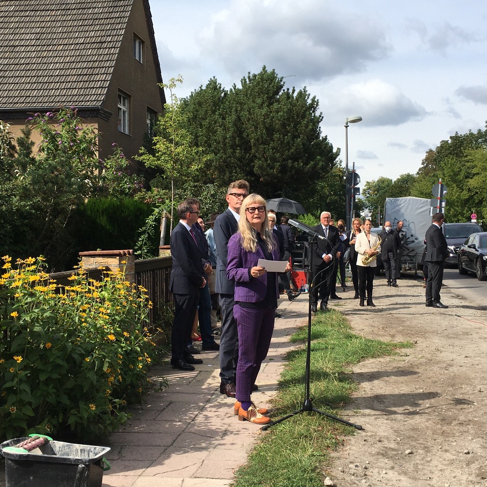Stolpersteinverlegung für Bruno Lüdke in Berlin-Köpenick im Beisein des Bundespräsidenten Frank-Walter Steinmeier und dem Schauspieler Mario Adorf (28.8.2021)