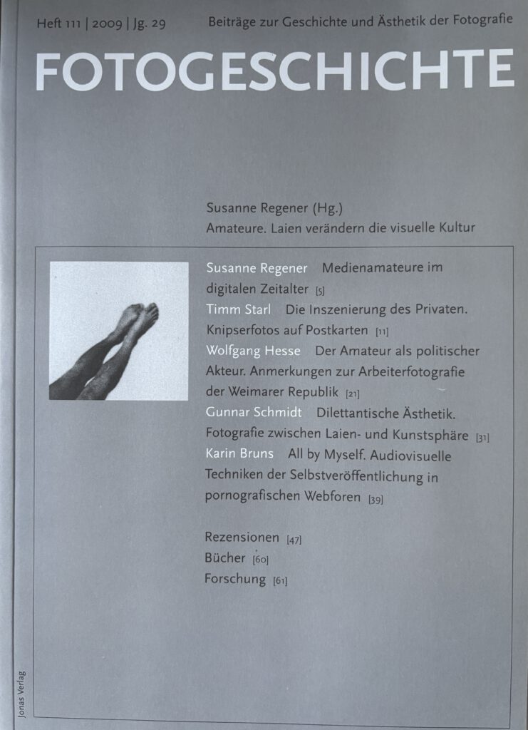 (2009) (Hg.): Fotogeschichte: Beiträge zur Geschichte und Ästhetik der Fotografie, Heft 111: Amateure. Laien verändern die visuelle Kultur.