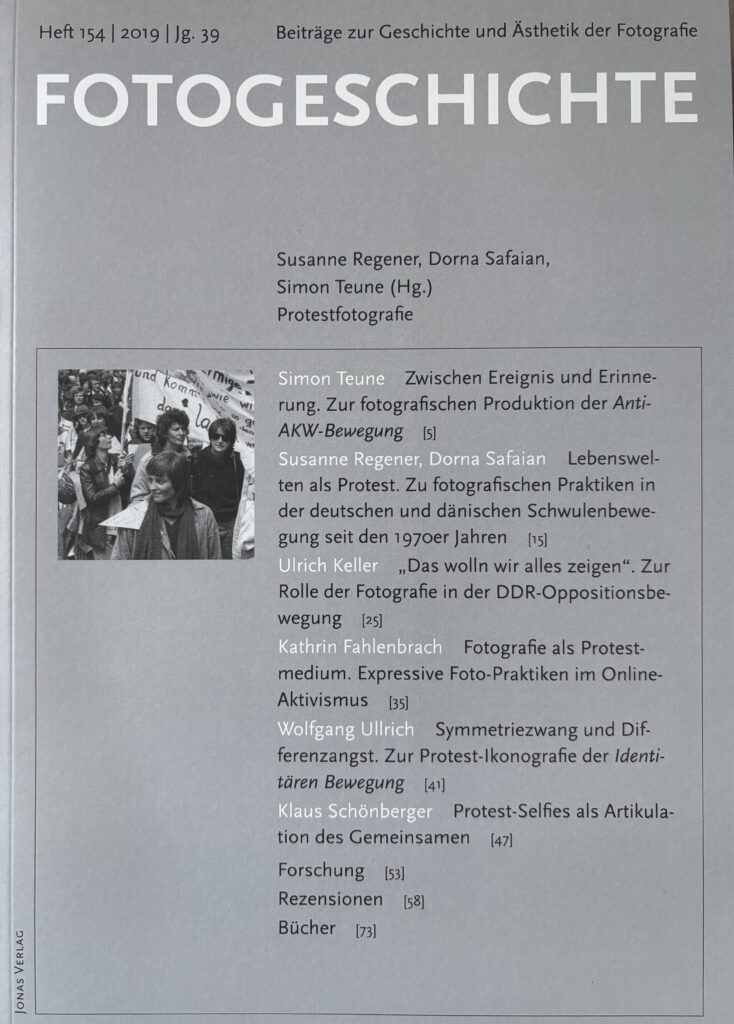 (2019): (Hg.) mit Dorna Safaian und Simon Teune: Protestfotografie. Fotogeschichte. Beiträge zur Geschichte und Ästhetik der Fotografie. Heft 154. Jg. 29.
